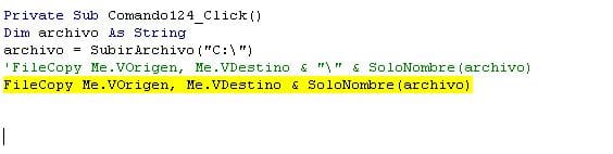 Dim archivo as string archivo = SubirArchivo(Me.Origen) FileCopy Me. Origen, Me. Destino & "\" & SoloNombre(archivo)