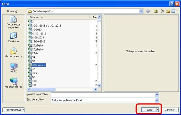 Sí funciona con todos los archivos, pero tienes que abrirlos desde excel: