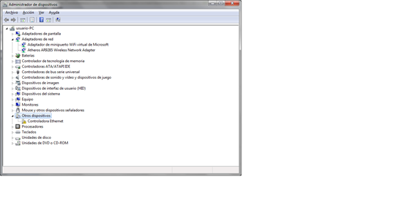 Por otro lado en el administrador de dispositivos al conseguir desinstalar el ethernet ahora ya no aparece junto a la tarjeta de de red