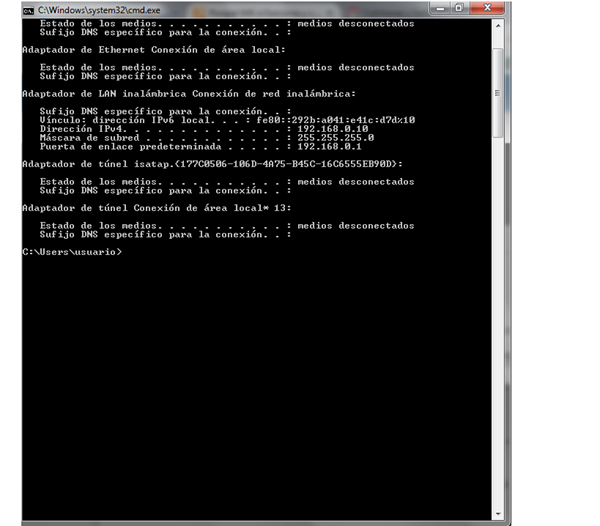 En el buscador escribe CMD y dale a ejecutar, te saldrá una ventana negra y pones IPCONFIG pégame aquí lo que te sale