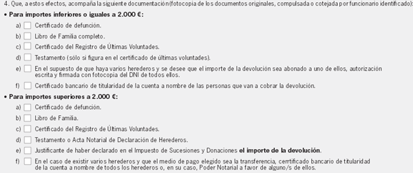 Buenas: tengo la declaración de un familiar retenida en Hacienda por que falleció el año pasado y me dicen que tengo que presentar el modelo H-100 Solicitud de pago de devolución a herederos, pero no sé cómo hacerlo. En concreto, la documentación necesaria a presentar es toda la que se refleja en el modelo? La forma de presentarla ante las Administración es mediante web, fax, en persona por oficina??