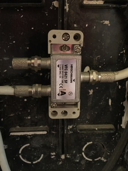 Necesito consejo sobre la correcta eliminación de un splitter de antena. Tengo un splitter para distribuir dos cables de TV en la caja de la acometida principal del piso (8 vecinos en cuatro plantas y yo vivo en el primer piso). El caso es que viviendo en la primera planta no quiero perder aún más señal.