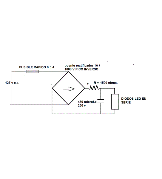 Me refiero a este esquema busque vos en YouTube conectar leds a 127 v y al principio sale el esquema yo añadiría después del puente de diodos una resistencia