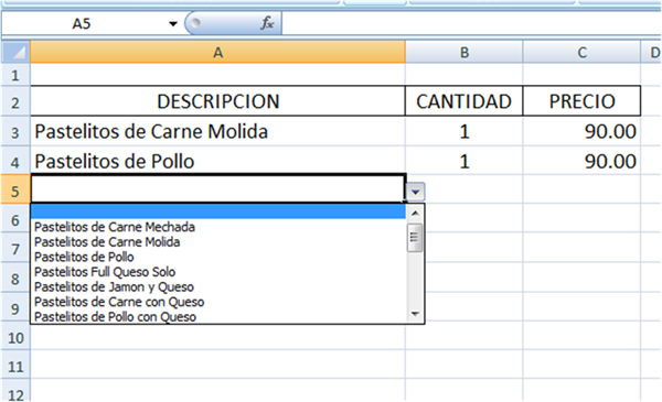 Le explico amiga, los productos los tengo en la misma "hoja1" y los coloque en una lista desplegable tal como se muestra en la imagen. Luego los precios de cada producto, segun lo selecione en la lsita desplegable, me traigo cada precio con la siguiente formula =BUSCARV(A3,I1:J21,2,FALSO)*B3