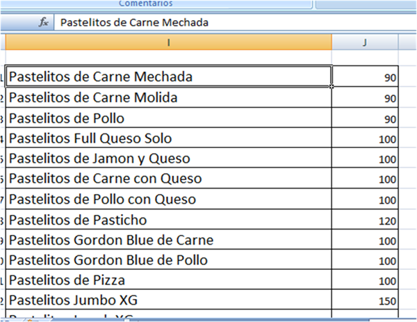 Esta es la lista de los productos que vendo, con sus respectivos precios;