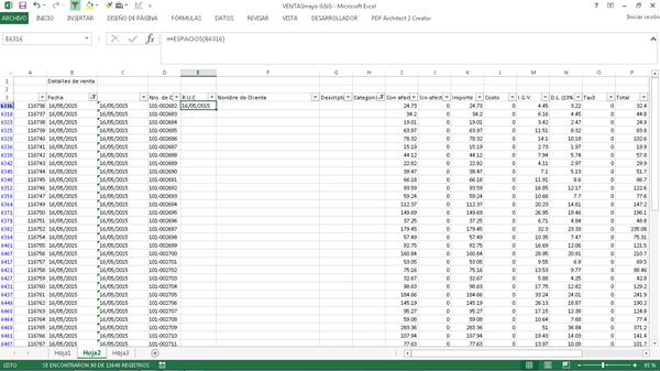 Tengo unos reporte de ventas que exporte de un sistema pero al momento de exportarlo en la columna de la fecha aparece un espacio en blanco al principio de la celda y esto hace que el dato de la celda este con formato texto y no como formato fecha