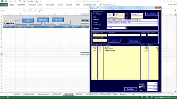 Adicional los datos de la factura tienen que buscar su ubicación en la hoja de artículos según al almacén que pertenecen