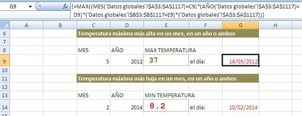 Hemos obtenido el dato de temperatura máxima o mínima en un mes, o en un año concretos pero queremos saber el día exacto en que se produjo ese hecho. ¿Cuál sería la fórmula?