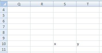 La x está dentro de la celda S10, la y está dentro de la celda T10