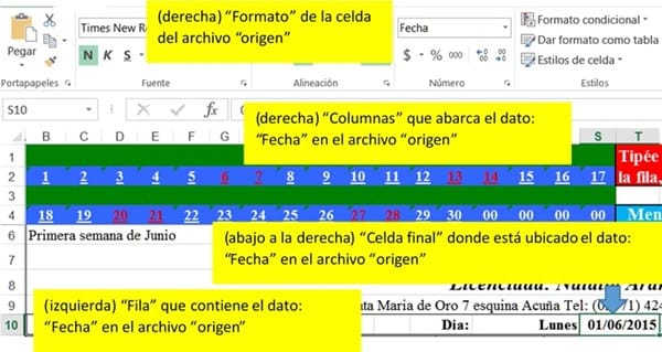 Pero, en la celda del archivo "destino," se sigue "viendo" así: