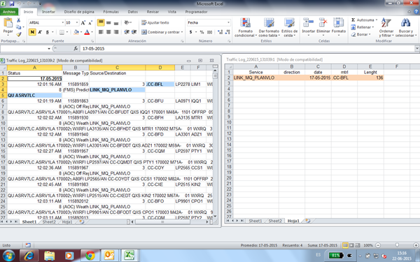 4.- Según la fecha, la columna "A" las celda 5 de la hoja sheet 1 me de largo de la celda, en la hoja 1 celda E2. ( Las celdas de la columna "A" están distribuidas por la hora del día (que indica la fecha). Luego un numero 8 y después el el QU... ( el cual quiero que se aplique largo). Y que aparezca en la columna E según corresponda Source/destination.
