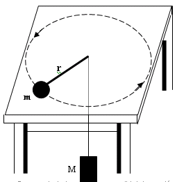 Para que la masa M "suba" la fuerza centrifuga de la masa que gira ("m") tiene que ser mayor que el peso de m.