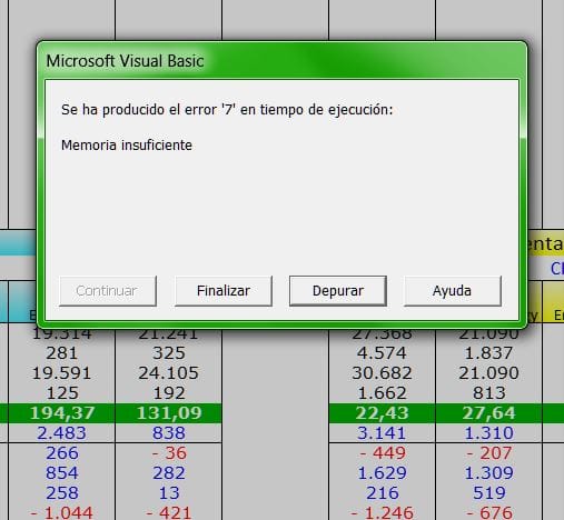 Cómo evitar mensaje de error 7, por memoria insuficiente