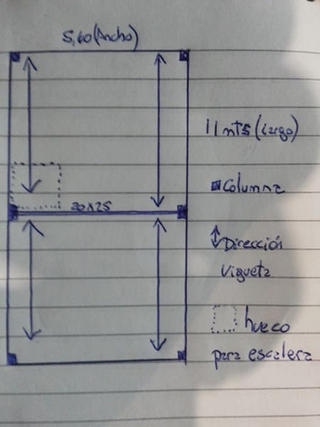 Luego que obtienes los datos y puedes calcular esa viga, sin sacar los puntales o gatos, pues, cortas la pares de ambos lados a la par de la de hormigón rota, de manera de poder pasar los dobleT que apoyen en todo el ancho de las paredes laterales.
