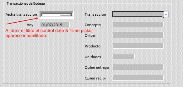 Control Date & time picker se inhabilita al abrir el libro.