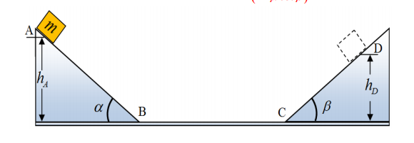 Considere que el plano horizontal BC es liso y que las pendientes AB y CD son