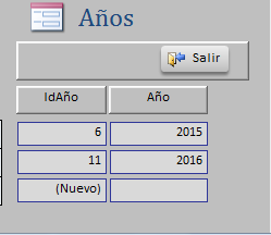 Al clic en cada uno de ellos abre el formulario por ejemplo el Año donde ingresos nuevos años el cual se habré emergente sin cerrar el formulario Nuevo Gasto