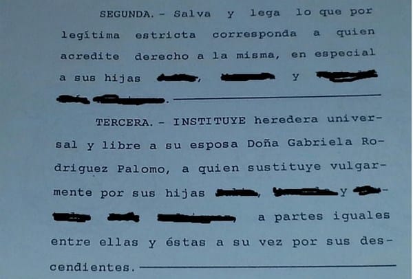 Tengo una duda sobre la herencia de mis padres, explico un poco el asunto, somos tres hermanas mis padres en el año 1989 hicieron una herencia del piso en propiedad que tenían y el poquito dinero que había en el banco, lo pusieron así: si faltaba uno de ellos pasaba al otro y si faltaban los dos pasaba a las tres hijas, les remito foto, el caso es que mi padre falleció en el año 2004 y nosotras renunciamos a su parte se hicieron los tramites normales y ahora mirando los papeles de la herencia vemos que desde el 2004 no figuramos las hijas esta puesta sola mi madre como heredera que aun vive, entonces nuestra pregunta es: ¿Vale el primer testamento donde se nos nombra herederas a las tres hermanas? ¿O hay que ir a que arreglen algo? Perdón pero es que de esto no entendemos nada... Gracias.