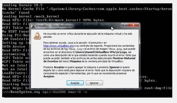 Error al bootear maquina virtual Mavericks desde Virtualbox