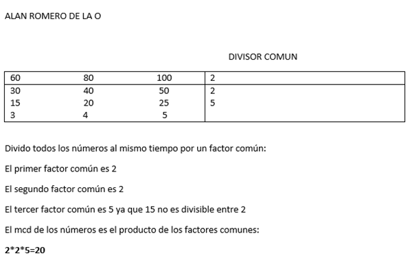 Para hallar el m.c.d. de varios números por descomposición en factores primos, se dividen al mismo tiempo todos los números dados por un factor común, los cocientes nuevamente por un factor común y así sucesivamente.