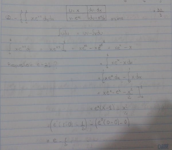 Este ejercicio es simple al parecer pero el e^xy dy me tiene confundida