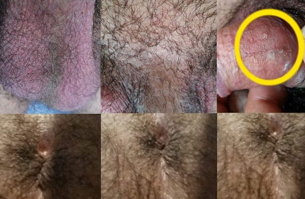 Tras tener relaciones sexuales con mi novia, presento una acumulación de grumos blancos en la piel del área genital que van desde el pubis, escroto y ano; en el ano unos bultos suaves que ya han reducido su tamaño pero que aún incomodan, picazones en escroto y pubis debido a esos grumos, y unos granitos blancos en el pene que se ven al retraer el prepucio.