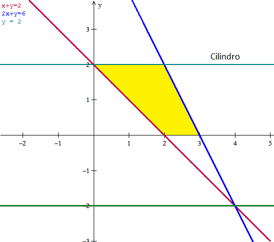 Lo marcado en amarillo es el dominio. Para hacerlo con una sola integral tomaremos como límites fijos los de y, entre 0<=y<=2