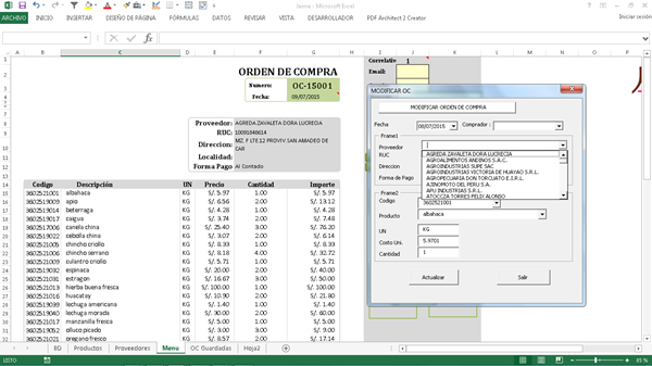 Tengo un formulario para generar Ordenes de compra y deseo modificar algún campo como por ejemplo el nombre del proveedor si ya se tiene nombre de proveedor en la celda que se carguen automáticamente los datos de las celda en los text box (ruc, dirección, formas de pago) pero si esta vacío el nombre de la celda del proveedor que me cargue toda la lista de proveedores