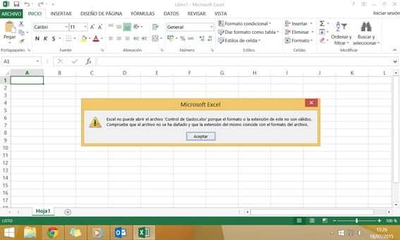 Excel no puede abrir el archivo “x.xlsx” porque el formato o la extensión de este no son válidos.