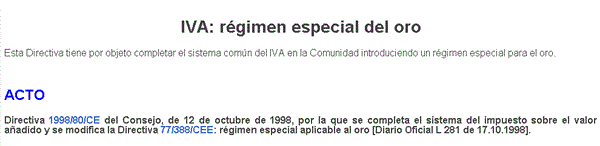 2.- Existe un régimen especial de IVA para el oro denominado de inversión: