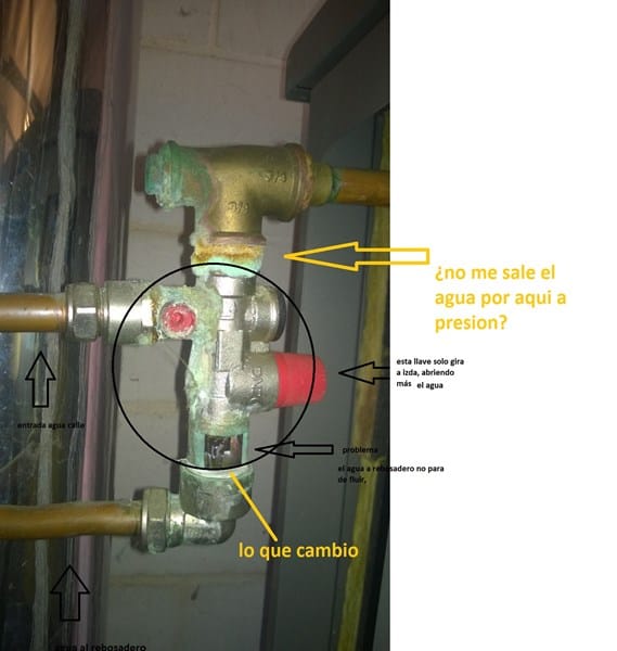 Parece como si la válvula estuviese rota, ya que no para de salir agua hacia el rebosadero.