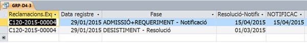 El problema es que en el resultado también debe aparecer un dato de otro registro: la fecha del campo “Resolució-Notificació” si la fase es “ADMISSIÓ+REQUERIMENT – Notificació” (otro registro de la misma tabla), y para esto necesito, extraer la fecha a un nuevo campo y ponerla en la mima línea de registro “DESISTIMENT - Resolució”.