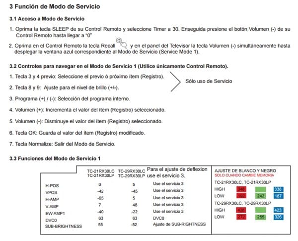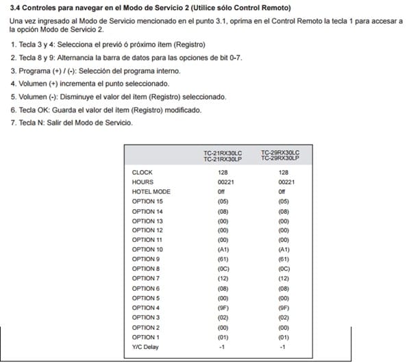 Modo de servicio de un tv pantalla plana de Panasonic modelo ct-21rx30lc