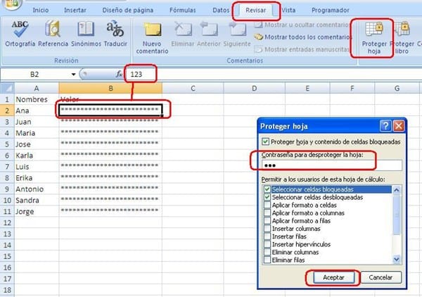 De nuevo molestando con una duda; y la duda es: cómo se puede mostrar el valor de una celda pidiendo contraseña. Es decir que los valores que estén en la fila B no se vean, o se vean con asteriscos puntos guiones o lo que sea, y que únicamente se muestren con contraseña.