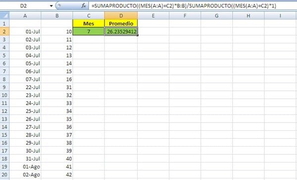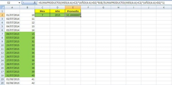 Fórmula Excel Promedio de un listado seleccionando solo un grupo de datos