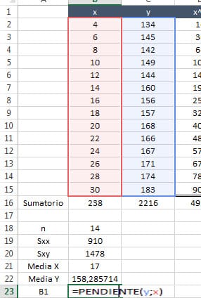 Estoy tratando de hallar fórmulas que me permita ahorrar algo de trabajo en cálculos estadísticos pero no hallo algunas de ellas (enmarcadas en rojo). Dejo una imagen para que puedan ver de donde saco cada valor y ver si puedo ahorrar las columnas desde la D hasta la I. Desde ya gracias por la ayuda que puedan brindarme.