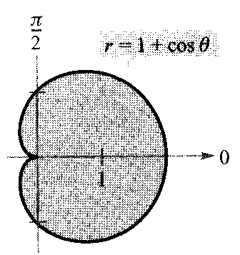 $$\begin{align}&A=\frac 12\int_{\theta_1}^{\theta_2}f(\theta)^2\,d\theta =\\&\\&\frac 12\int_0^{2\pi}(1+\cos\theta)^2 d\theta=\\&\\&\frac 12\int_0^{2\pi}\left(1+2 \cos \theta+ \cos^2\theta\right) d\theta\\&\\&\left[\frac{\theta}{2}+sen\,\theta\right]_0^{2\pi}+\frac 12\int_0^{2\pi}\frac{1+cos2\theta}{2}d\theta=\\&\\&\pi+\frac 12\left[\frac{\theta}{2}+\frac{sen\, 2\theta}{4} \right]_0^{2\pi}=\\&\\&\pi+\frac{\pi}{2}=\frac {3\pi}2\end{align}$$---