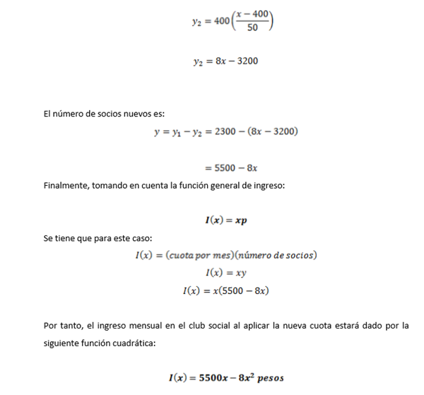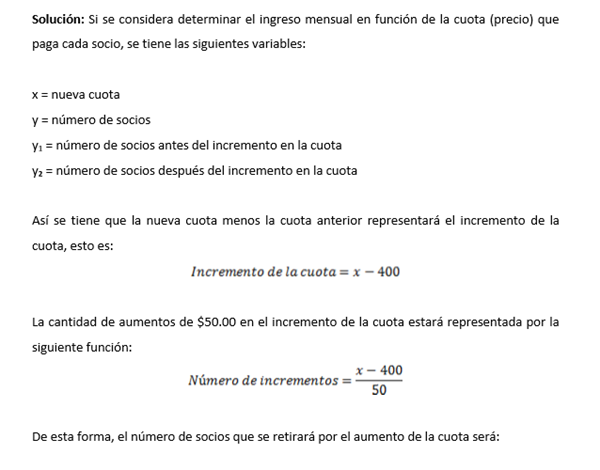 ¿Cuál será el comportamiento del ingreso del club al incrementar en $50.00 la cuota mensual