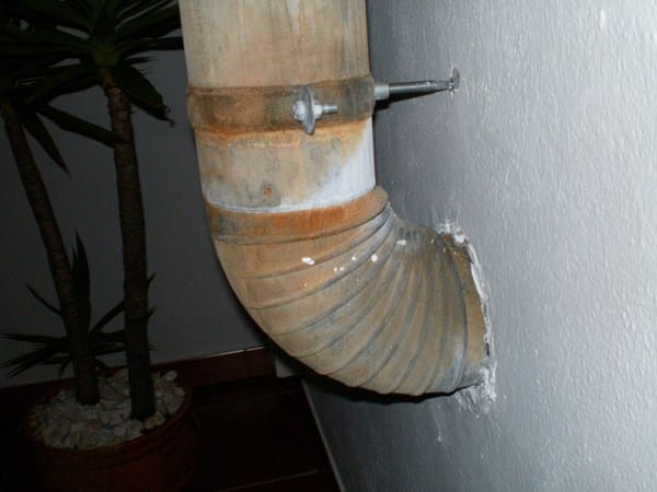 La salida de tubo es de 120 y sale hacia atrás atravesando la pared hasta el patio donde con un codo de 90 grados sigue pared arriba. Desde el codo hasta el sombrerete le hemos puesto siete tubos de un metro para pasar la altura del tejado del vecino y para no molestar con los humos. Este modelo de estufa no lleva tiro en el hogar (la chapa esta que va dentro y está inclinada que yo veo en otros modelos), o sea que te asomas a la puerta y ves perfectamente al fondo arriba la salida del tubo. Esto se lo he comentado al fabricante y dice que a ese modelo no le hace falta. No sé.