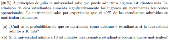 MatemáticasCiencias económicasIngeniería Industrial Juan Pablo Usuga... el 29 jul. 15 Estadística y probabilidad-admitidos a una unviersidad ¿Me podría colaborar con lo siguiente por favor? Seguir Siguiendo Dejar de seguir