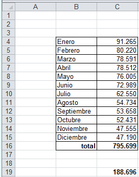 Tengo una columna con cifras y un resultado aparte (en valores) que corresponde a una suma de 2 o más celdas de esa columna. (En el ejemplo he sumado C6+C10+C14)