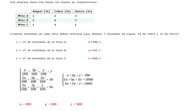 ¿Cuántas toneladas de cada mina deben utilizarse para obtener 7 toneladas de níquel, 18 de cobre y 16 de hierro?