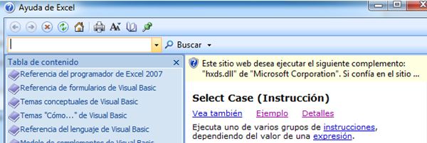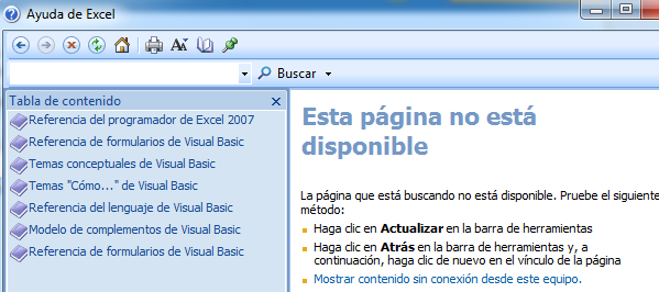 Tengo problemas con la Ayuda de /vb Excel 2007/, solo funciona online.