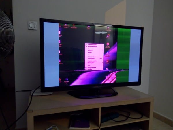 El problema: (son varias fotos, arriba pone 1 2 3 4 5... Se ve el tipo de cable, de conexion a la tv, de conexion al pc -parece un cable antiguo por el anclaje, tiene tornillos de destornillador, pero está NUEVO- y las DISTORSIONES cromáticas,... Uf )
