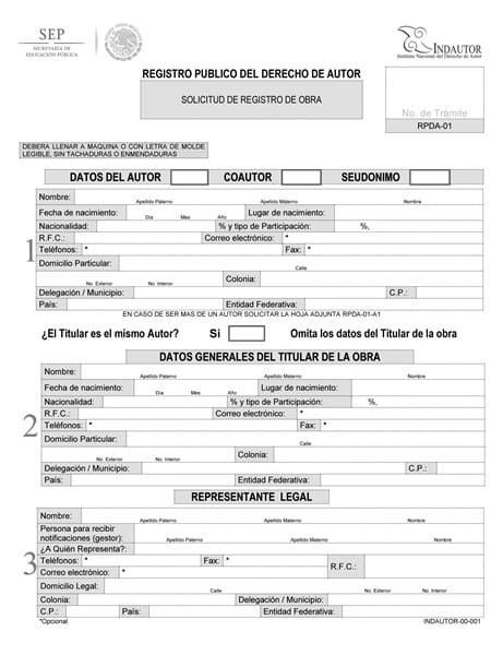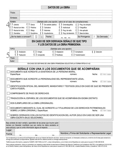 Como llenar una solicitud de registro de obra?