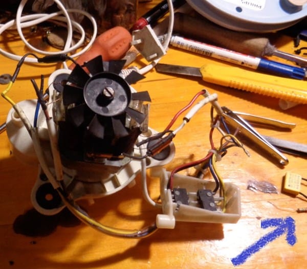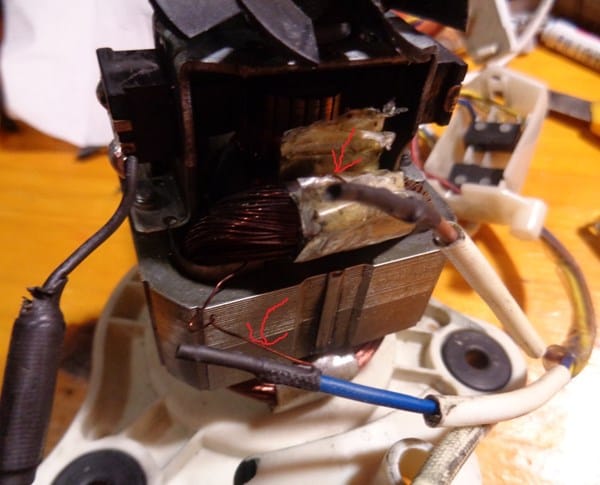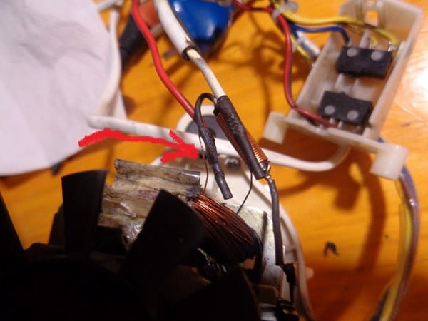 Sucede que limpié los engranajes y se mojó un poco la bobina entonces me sugirieron que busque el termofusible debajo de algunos recubrimientos de plástico en los cables al lado de la bobina ¡ Pero no encontré ningún termofusible