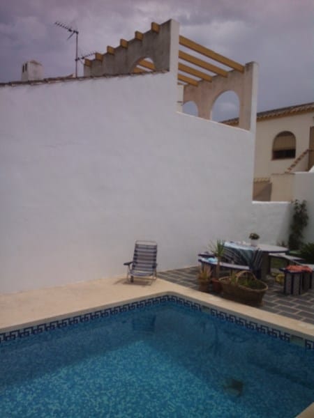 Como se aprecia en la foto, mis vecinos en la medianera tienen un hueco, hace 4 años hicimos la piscina y desde entonces nos han caído todo tipo de artilugios. ¿Sería posible tapar el hueco? Levantando muro o poniendo alguna malla que impida que caigan objetos y les tape la visión hacia la casa.