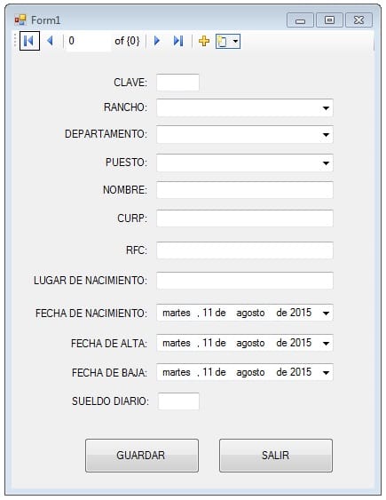 En cuanto al botón de guardar y de salir lo puedes hacer con el asistente de controles es sencillo si lo que quieres es algo sencillo. Añades el botón de comando y cuando te salga el asistente eliges la opción de operaciones con registro y elijes guardar registro y el asistente de lo crea, para el de salir la opción seria operaciones con formularios y cerrar formulario.