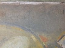 Hay también otro par de detalles en cuestión: la tela esta muy floja ya que se ha desprendido del bastidor en ciertas partes y tiene unas pequeñas pero visibles perforaciones que no se a que atribuir; sin embargo lo que me más me preocupa, son las muchas grietillas que asoman en la superficie, sea en las zonas de fondo que en las de mayor empaste. ¿Hasta qué punto esto es reparable? O ¿Qué se puede hacer para combatir más deterioro?