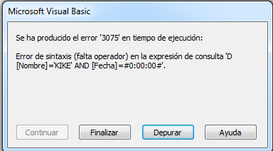 miFiltro = miFiltro & " AND [Fecha]= # " & vEdad